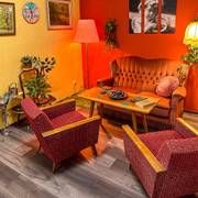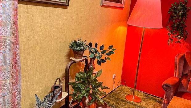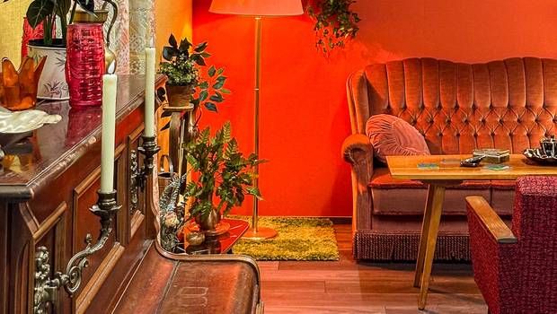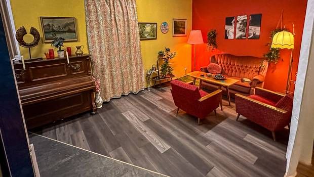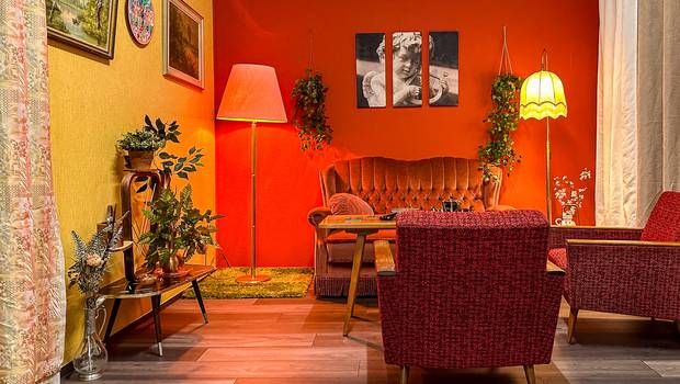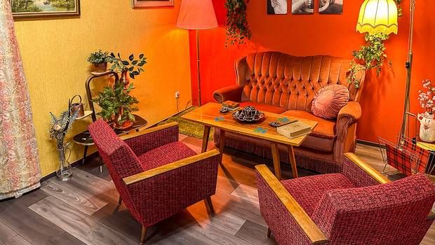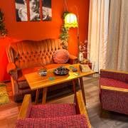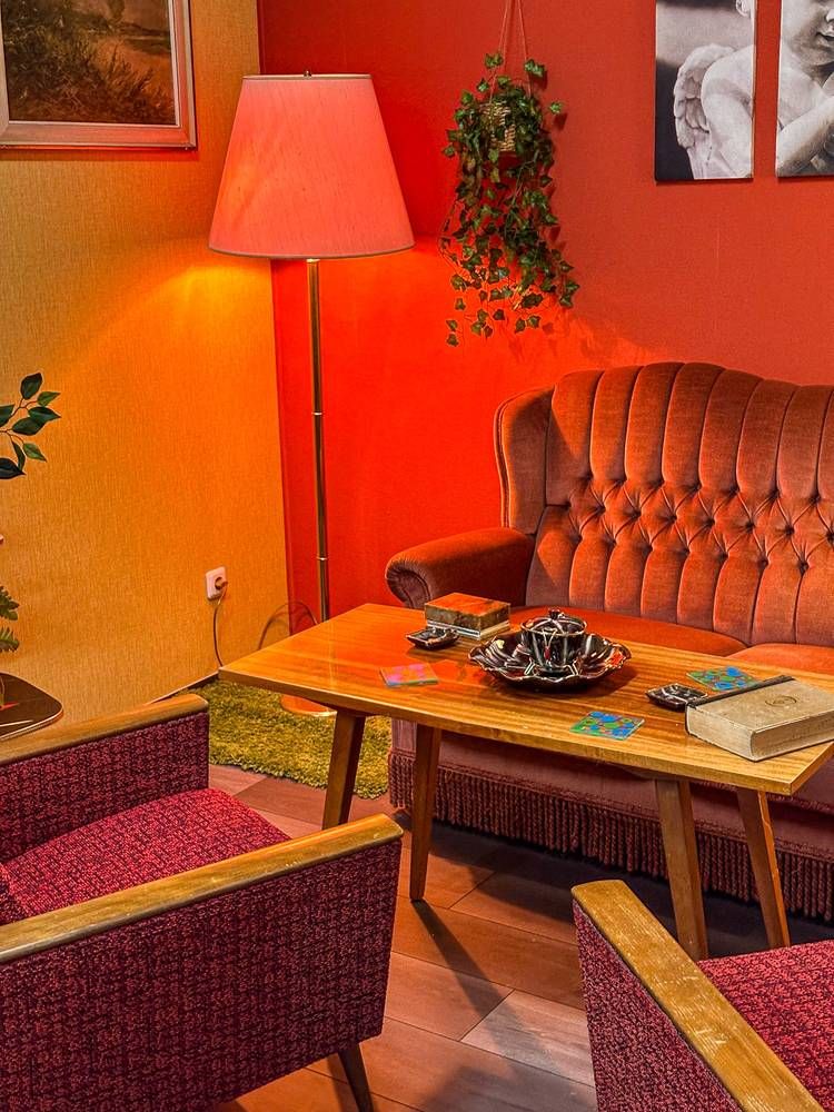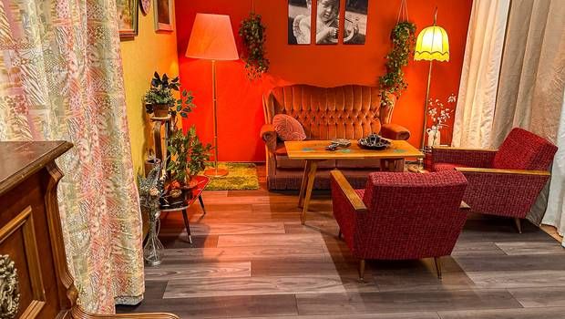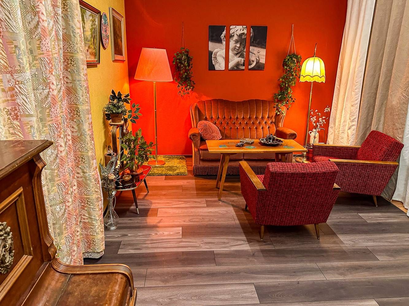 Im vorderen Bereich von Studio 9 findest Du, bis Ende Januar, unsere fertig aufgebaute Retro-Location im 60er Jahre Stil .